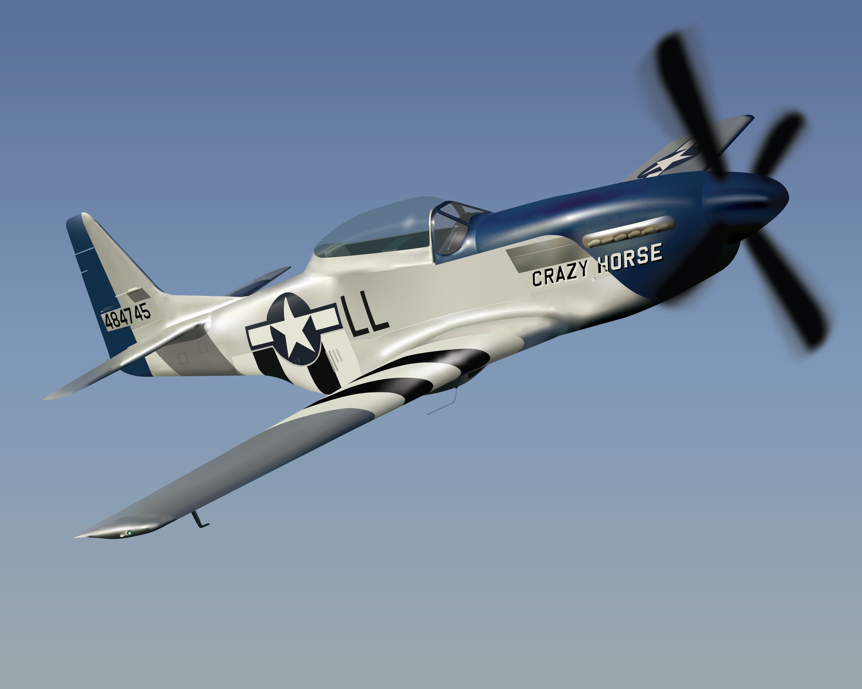 This project was an exercise in realistic rendering using Adobe Illustrator. After making a wireframe drawing of a WWII-era P-51 Mustang fighter plane, I used various techniques such as freeform gradient to render the aircraft as realistically as possible.